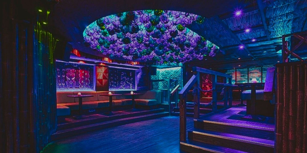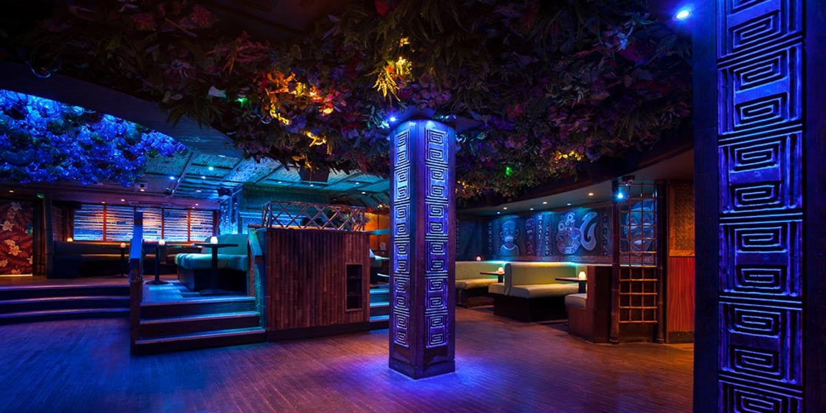 The Aloha party room is a private party venue in Mayfair that features wooden carvings and a dance floor with multicoloured fisherman’s balls. It is the perfect space for a special soiree, late night party or birthday celebration to be remembered.