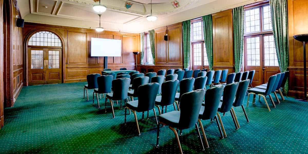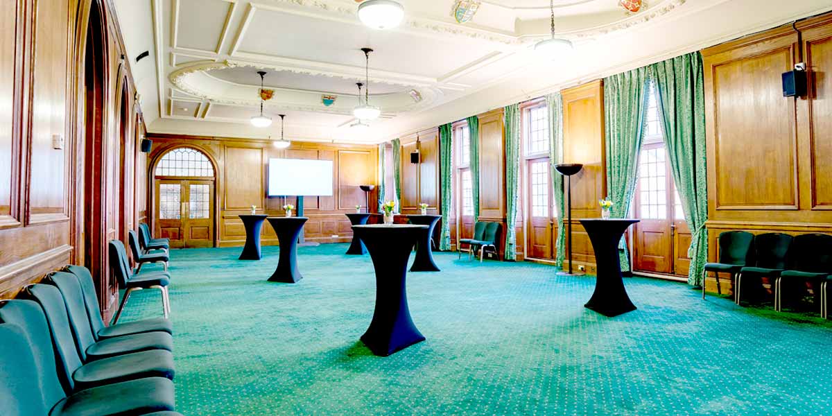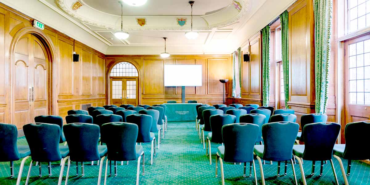 The Bishop Partridge Hall is one of the most popular spaces in Church House. The atmosphere is a blend of elegant stucco ceilings, traditional oak panelling and a stunning stone balcony with views of Dean’s Yard and Westminster Abbey. Bishop Partridge Hall is often used as a meeting and conference space or for social occasions such as dinners and receptions.