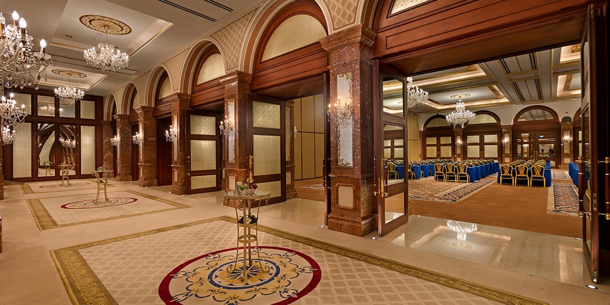 The Dolmabachce Ballroom showcases 1,800 square meters of space and can seat 1,800 guests in theatre style. It can also seat 1,200 for dinner or up to 2,000 for a cocktail reception. The ballroom can also be divided into three smaller venues and includes a spacious foyer area that can be used for smaller functions.