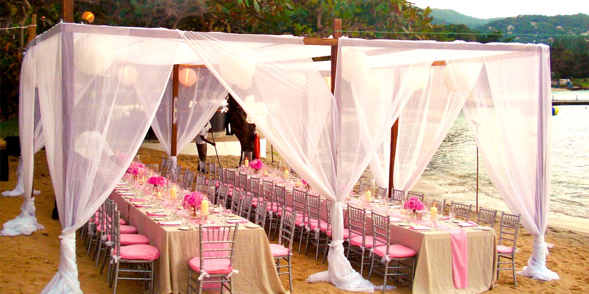 This sun-kissed, white sand beach is an intimate, casual and natural setting for a rehearsal dinner, barefoot wedding ceremony, lively cocktail reception or fun wedding reception for up to 100 guests.