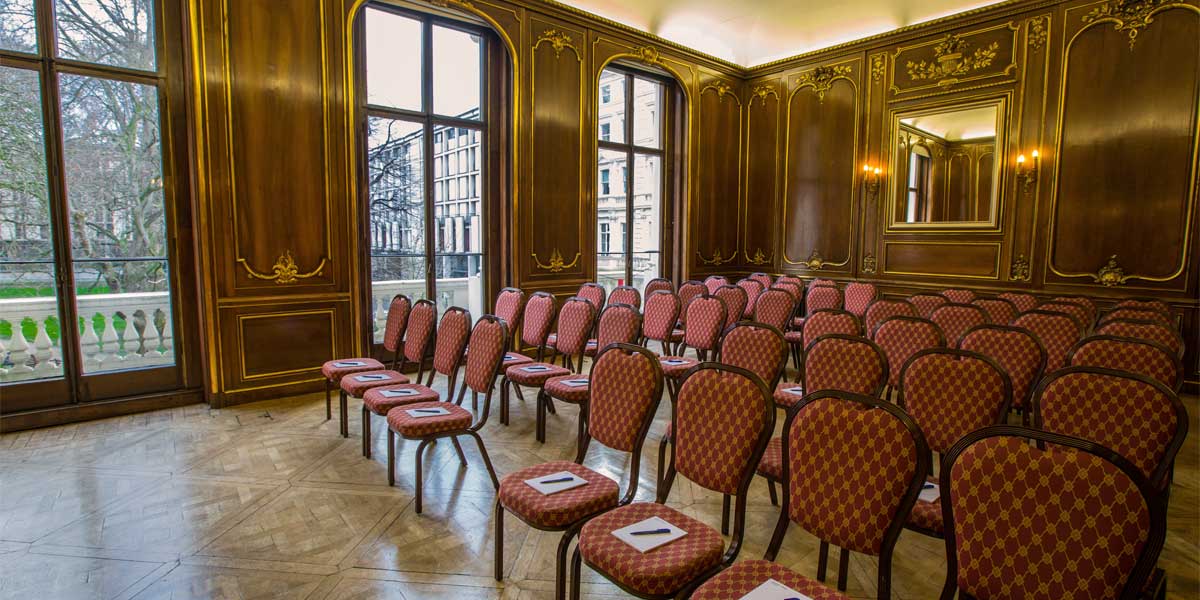 A luxurious space packed with period features, the Ballroom is the perfect venue for intimate meetings, private dinners and drinks receptions for up to 50 guests.