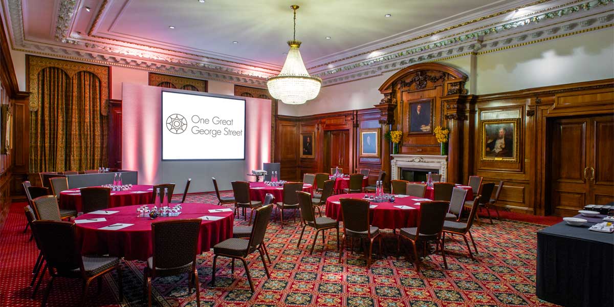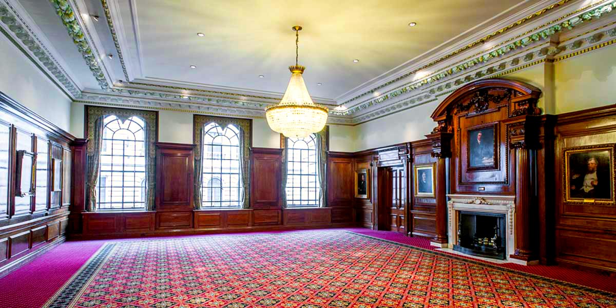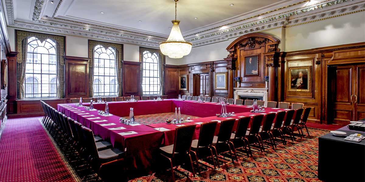 The impressive event space offered by the Brunel Room features high ceilings, large windows and walls covered with rich, dark French walnut panelling. Its ceilings are adorned by beautifully embellished plaster and lit by a large chandelier and often used as a film location venue