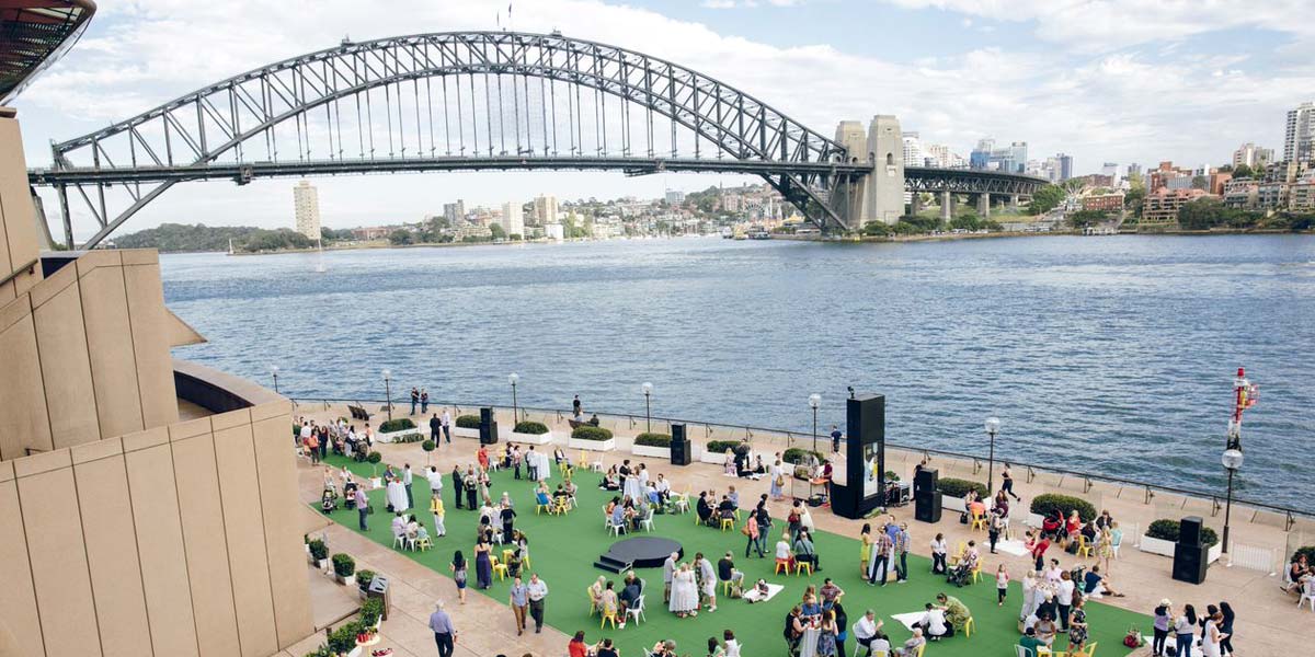 The Forecourt is Sydney Opera House’s largest performance space. Designed as an amphitheatre, set on the Monumental Steps between the white architectural sails and the city skyline, this venue has staged outdoor performances ranging from sporting events to rock concerts for audiences of up to 6,000.