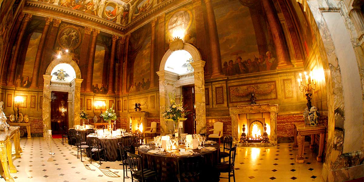 This magnificent hall at Blenheim Palace rises 67 feet to a decorative ceiling painted by James Thornhill. This event space is perfect for use as a gala dinner venue or for a special drinks reception. It offers a unique and luxurious venue for your celebration. Combine the Saloon with the Great Hall for a drinks reception for up to 250 guests or dinner for up to 150 guests.