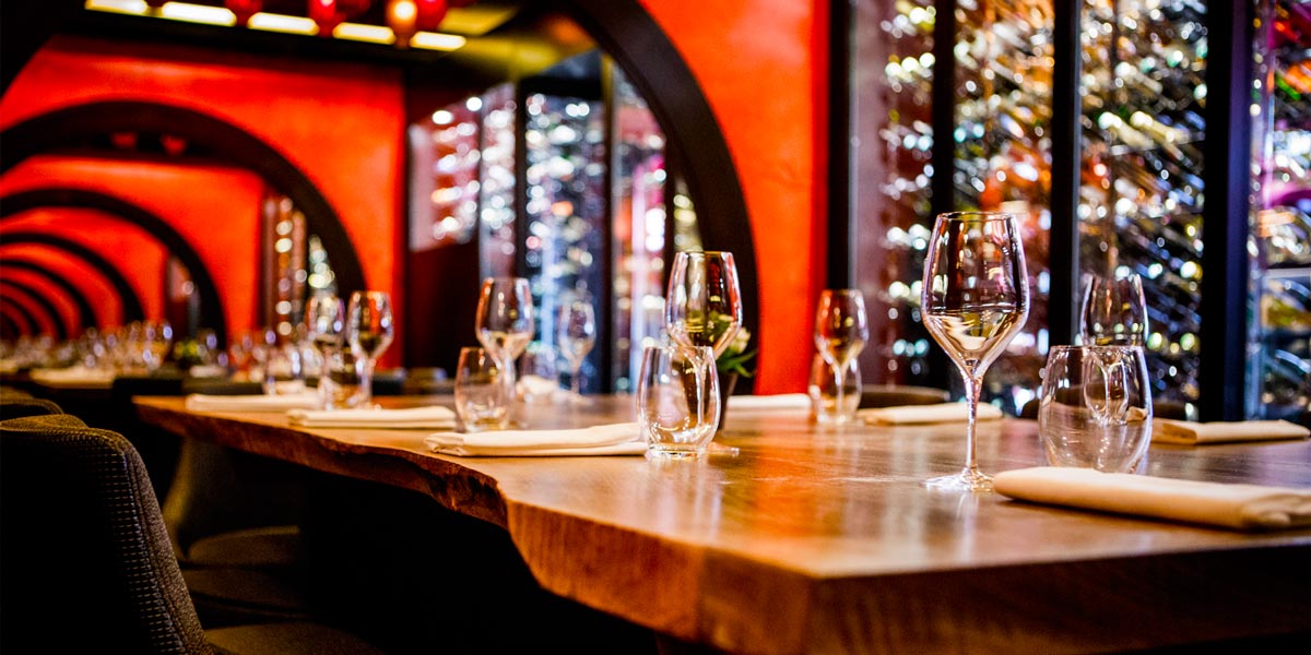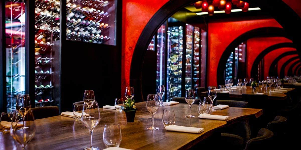 The Wine Cellar is a brand new and exclusive space that can accommodate up to 10 guests for a meeting, lunch or dinner. The ideal private dining venue or perfect for a wine tasting, the cellar is elegantly decorated and dedicated to great wines. A magnificent table made of pale walnut dominates the space and red lanterns line the ceiling.